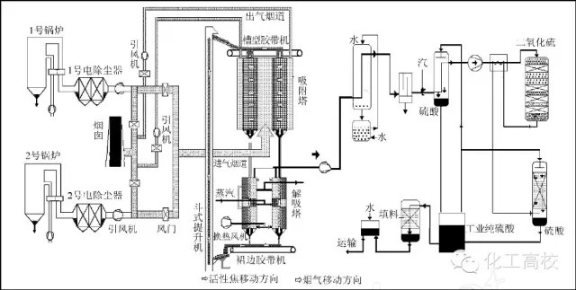 活性焦煙氣脫硫技術工藝流程示意
