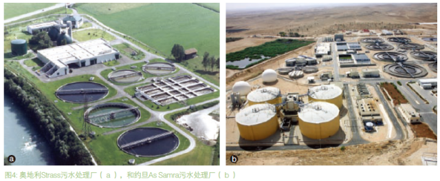 如今,奧地利的兩個市級污水處理廠實現(xiàn)了能源自給,即22萬人口當(dāng)量的Strass污水處理廠(見圖4a)和人口當(dāng)量為5萬的Wolfgangsee-Ischl污水處理廠。兩家能源自足的污水處理廠實行污水去除營養(yǎng)物處理和能源優(yōu)化項目已有近20年的歷史。他們能源優(yōu)化的主要方式包括最佳曝氣控制,從初沉池中回收更多的污泥,為厭氧消化提供更多的有機物質(zhì),優(yōu)化中溫條件下的厭氧污泥分解器的性能,提高熱電聯(lián)合節(jié)能量,以污泥脫水過濾設(shè)備為基質(zhì)進(jìn)行全程自養(yǎng)脫氮處理。