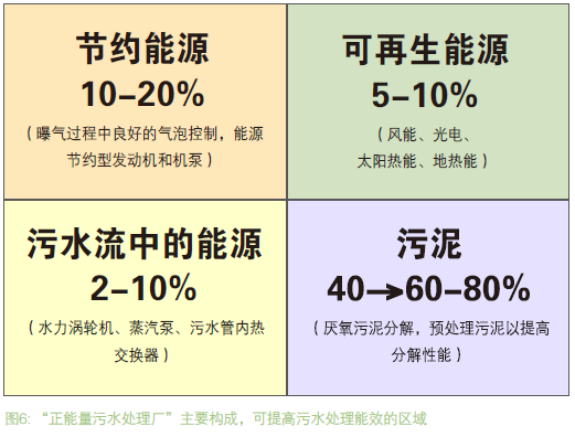 厭氧消化仍然是目前最具前景的從污水中回收化學(xué)能的技術(shù)。新興的節(jié)省能源和生產(chǎn)能源的技術(shù)裝置,如微生物燃料電池、微生物電解池和微生物脫鹽電池有望在不遠(yuǎn)的將來變得切實可行。最大化每種潛在節(jié)能產(chǎn)能技術(shù)帶來的產(chǎn)出,可使污水處理廠尤其是大型處理廠回收能源,并最終滿足污水廠運行所需的全部能源,甚至有時會有能量盈余(所回收或生產(chǎn)的能量超出工廠運營所需的能量)。