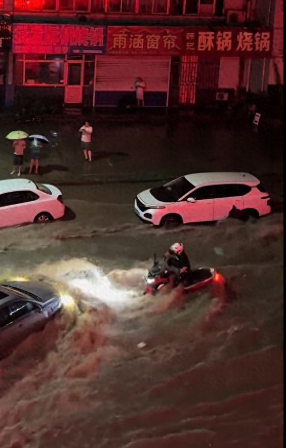 “如果騎兩輪車的話,水的沖擊力量很大。當時我們救援時,我從消防車一下車,只要不扶住,根本就站不住,你想那么大的水量,騎著車的話本來就不太穩(wěn),當晚我們也救了兩個騎電動車的小孩,孩子被沖倒卡在車底,也是站不起來。”
