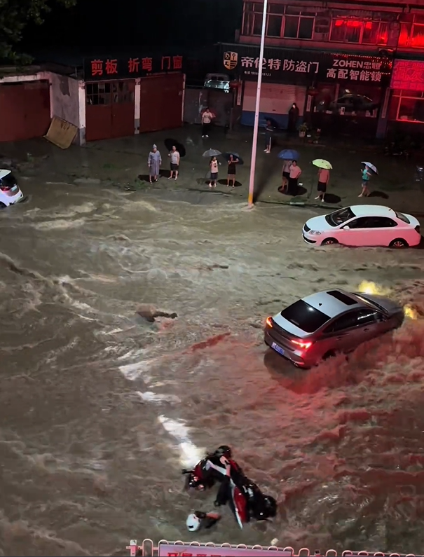 這位市民表示,當時情況十分危急,“下面就是孝婦河。我們樓下水很大,水位很高,有車輛都被沖走,何況是人和摩托車。”