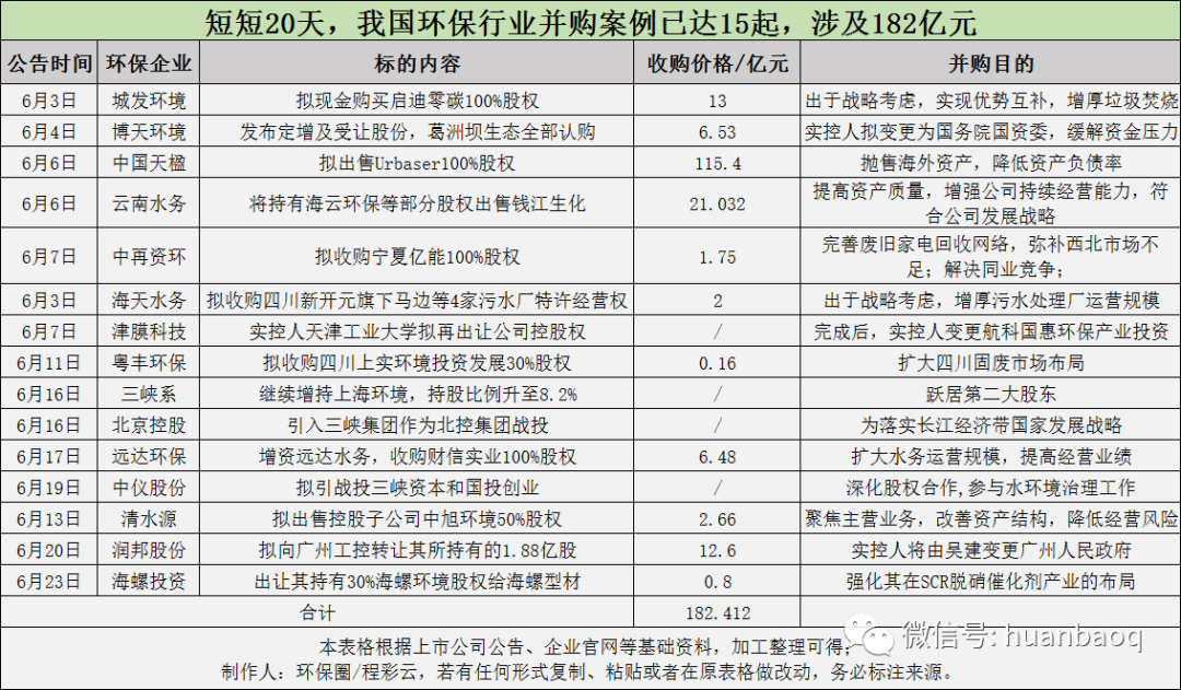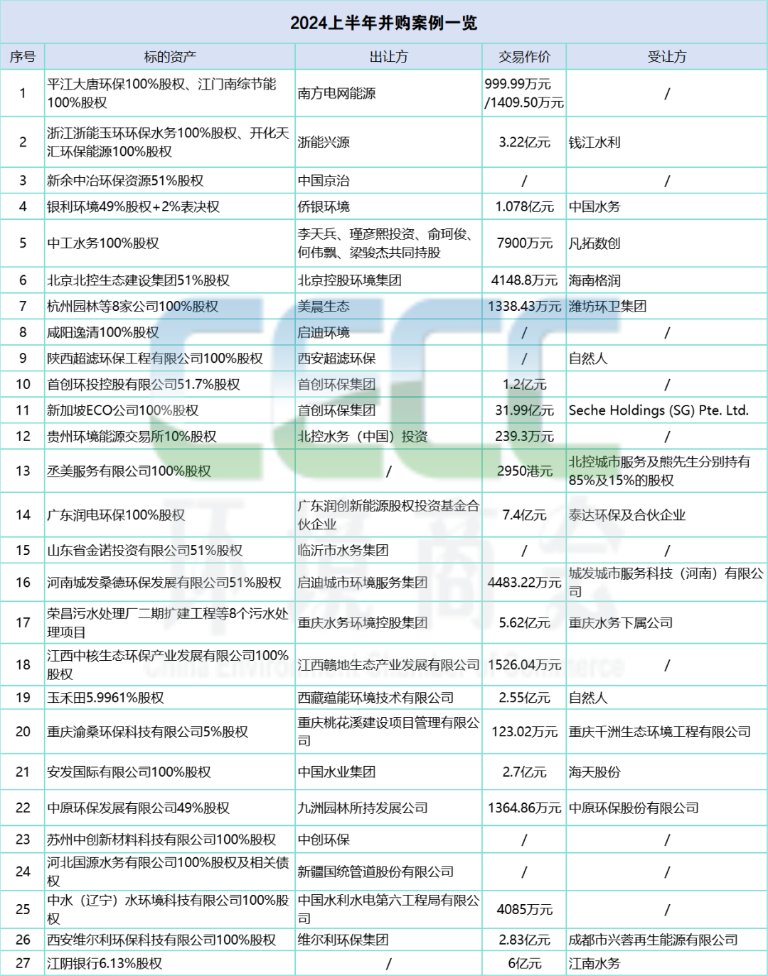 上半年環(huán)保資產(chǎn)收并購(gòu)案27起
