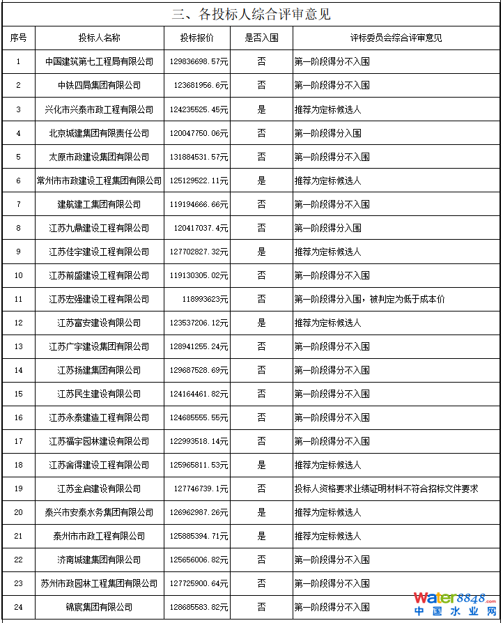 定標(biāo)候選人:泰興市安泰水務(wù)集團(tuán)有限公司,投標(biāo)報(bào)價(jià):126962987.26元。