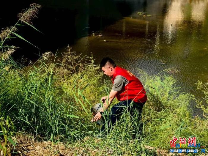 志愿者清理河邊垃圾。利通區(qū)水務(wù)局供圖