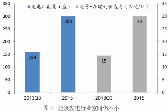 行業(yè)空間仍不小:根據(jù)中國固廢網(wǎng)的統(tǒng)計(jì),截至13年三季度末,全國已經(jīng)建成投運(yùn)159座垃圾焚燒廠,處理能力達(dá)到14.5萬噸/日,此外垃圾焚燒廠的建設(shè)趨向大型化,單廠規(guī)模達(dá)到912噸/日;而從“十二五”市場空間來看,到2015年底,預(yù)計(jì)投產(chǎn)和在建的生活焚燒發(fā)電廠將超過300座,日焚燒能力有望達(dá)到30萬噸/日。