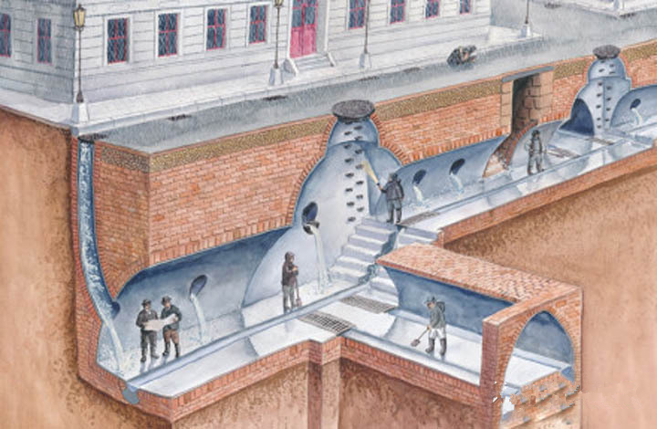 德國漢堡是歐洲大陸第一個擁有現代意義排水系統(tǒng)的城市,該系統(tǒng)每周利用潮水清理主要下水道。這種排水設計理念很快就作為樣板,被歐美其他城市效仿。而德國首都柏林晚至1874年才開始著手城市排水系統(tǒng)建設。