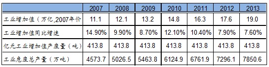 根據(jù)《第一次全國污染源普查公報》,2007年工業(yè)源中危險廢物產(chǎn)生量 4573.69 萬噸,遠超上述環(huán)保部公布數(shù)據(jù),以此我們測算2012-2013年全國實際危廢產(chǎn)量約為7296萬噸/年、7850萬噸/年。
