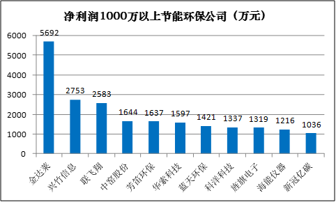與新三板其他行業(yè)相比,節(jié)能環(huán)保公司盈利情況較好,或與具備一定的公用事業(yè)屬性相關(guān)。根據(jù)Wind終端數(shù)據(jù),2013年新三板節(jié)能環(huán)保公司盈利85家,占比94.4%,剩余5家虧損,占比5.6%。其中,凈利潤(rùn)超過1000萬的有11家,500萬的有16家,100萬的有42家,合計(jì)占比76.7%。凈利潤(rùn)排名前五的公司為:金達(dá)萊、興竹信息、聯(lián)飛翔、中窯股份、芳笛環(huán)保;2013年凈利潤(rùn)分別為5692萬元、2752萬元、2583萬元、1643萬元、1637萬元。