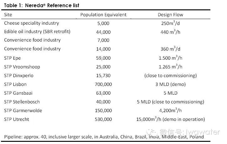目前大約有12個國際全面Nereda®安裝運行于工業(yè)和城市污水的處理,以及引用的數(shù)量正在快速增長,如表1所示。