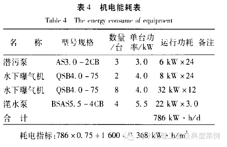 每天耗電量為590 kW ·h/d,污水處理耗電成