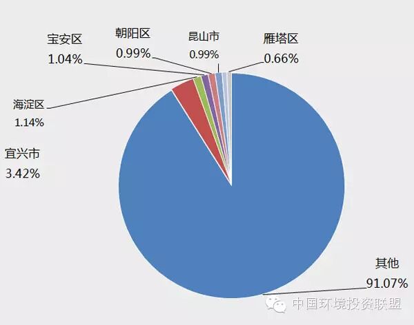 環(huán)保企業(yè)城市分布廣:無錫北京上海位列環(huán)保企業(yè)數(shù)量前三