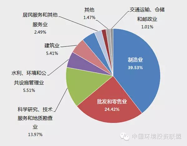 制造與批發(fā)零售企業(yè)數(shù)量占據(jù)環(huán)保產(chǎn)業(yè)鏈半壁江山