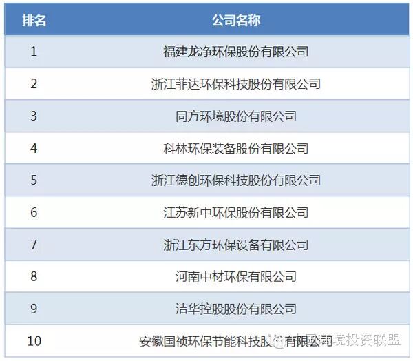 2014年中國十大環(huán)保設(shè)備企業(yè)榜單:龍凈環(huán)保居首