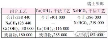 從化學(xué)試劑消耗成本和殘留物處理成本兩個(gè)方面,對(duì)各種煙氣凈化替代方案的年度運(yùn)營成本進(jìn)行了比較(見表2)。