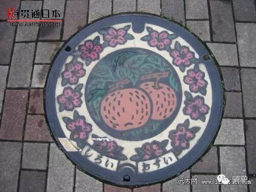 日本以花作為圖案的井蓋特別多,橘子的圖案。