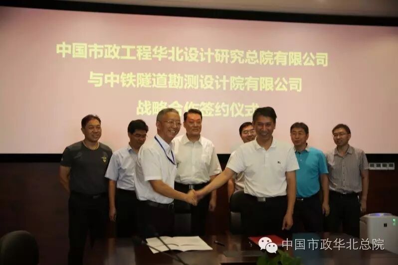2016年8月26日,中國(guó)市政工程華北設(shè)計(jì)研究總院有限公司與中鐵隧道勘測(cè)設(shè)計(jì)院有限公司舉行戰(zhàn)略合作簽約儀式,宣布達(dá)成戰(zhàn)略合作意向。