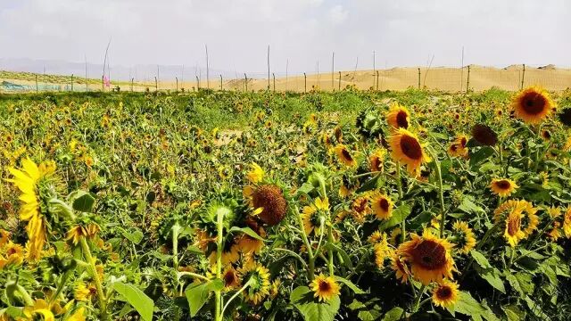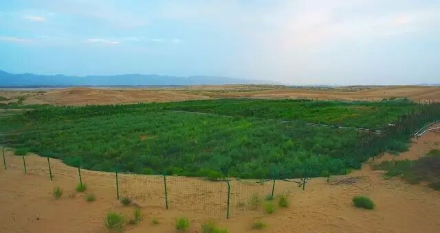 今年以來(lái),科研團(tuán)隊(duì)將“沙漠土壤化”生態(tài)恢復(fù)技術(shù)用于內(nèi)蒙古阿拉善盟烏蘭布和沙漠25畝試驗(yàn)地中。經(jīng)施工改造后的沙體當(dāng)即固定,并表現(xiàn)出持久的抗風(fēng)蝕能力。試驗(yàn)地種植了玉米、小麥、糜子、瓜果蔬菜、向日葵、觀賞草、喬木灌木等70多種植物,長(zhǎng)勢(shì)旺盛,開(kāi)花結(jié)果。狐貍、獾、野貓、蛙類(lèi)、鳥(niǎo)類(lèi)和許多昆蟲(chóng)在兩個(gè)足球場(chǎng)大的沙漠綠洲中安了家。