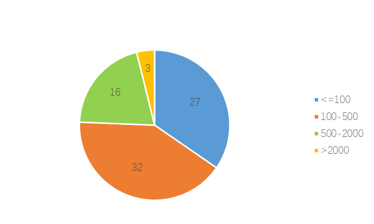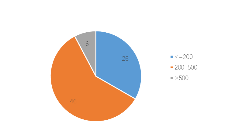 企業(yè)注冊(cè)人數(shù)在一定程度上可以反應(yīng)該企業(yè)的人才結(jié)構(gòu),各工程設(shè)計(jì)綜合甲級(jí)資質(zhì)企業(yè)注冊(cè)人數(shù)分布區(qū)間如下圖。78家企業(yè)注冊(cè)人數(shù)均超過(guò)100人,最少的是中石化洛陽(yáng)工程有限公司和中交水運(yùn)規(guī)劃設(shè)計(jì)院有限公司,均為104人,最多的為上海市政工程設(shè)計(jì)研究總院(集團(tuán))有限公司,有799人,其余注冊(cè)人數(shù)超過(guò)500人的企業(yè)依次為中國(guó)聯(lián)合工程有限公司(709)、中國(guó)鐵路設(shè)計(jì)集團(tuán)有限公司(611)、信息產(chǎn)業(yè)電子第十一設(shè)計(jì)研究院科技工程股份有限公司(549)、中鐵第四勘察設(shè)計(jì)院集團(tuán)有限公司(542)、機(jī)械工業(yè)第六設(shè)計(jì)研究院有限公司(502)。