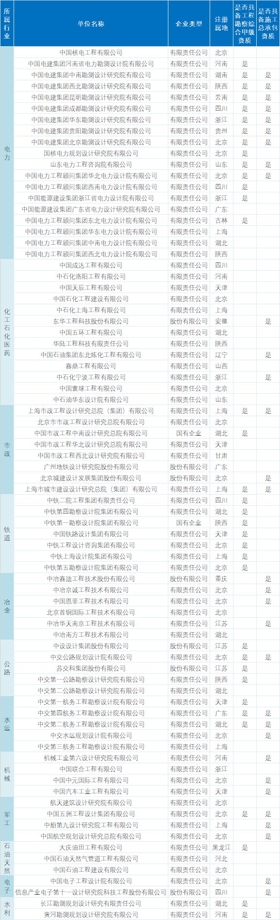 最新整理!全國(guó)工程設(shè)計(jì)綜合資質(zhì)甲級(jí)企業(yè)名錄(78家)