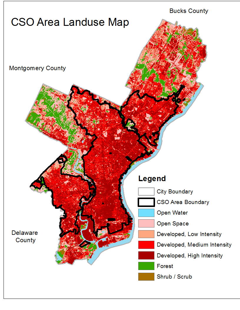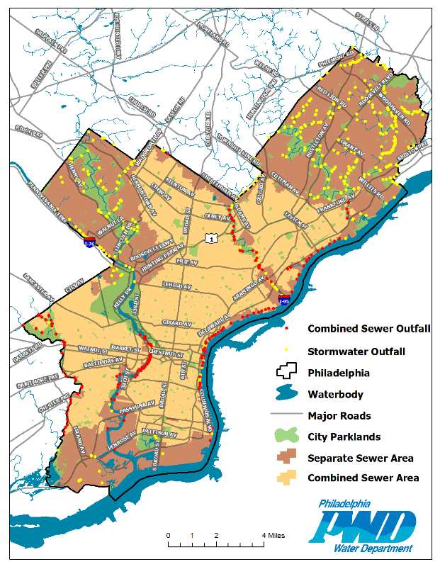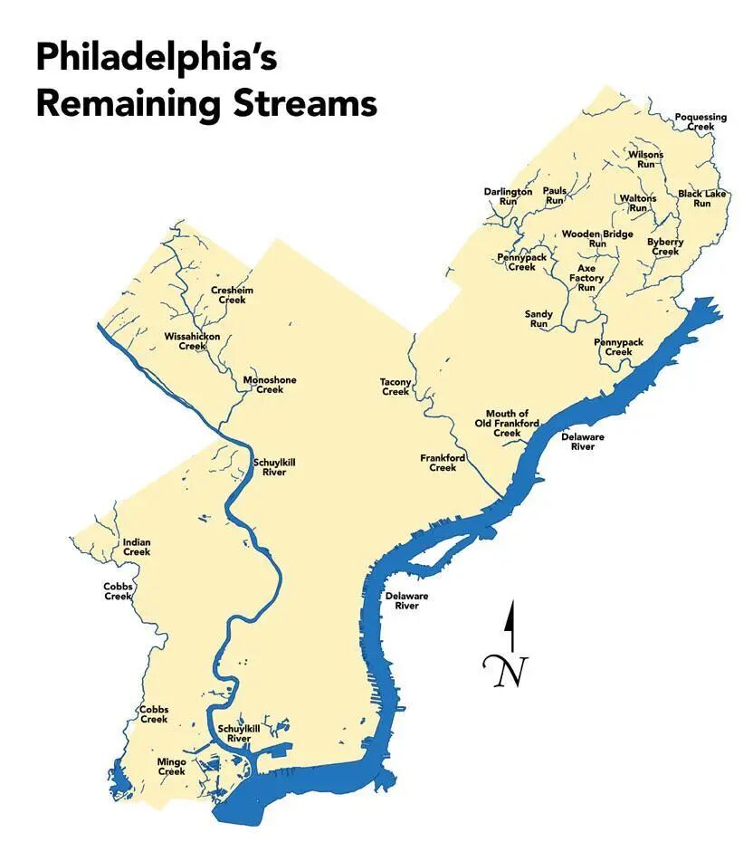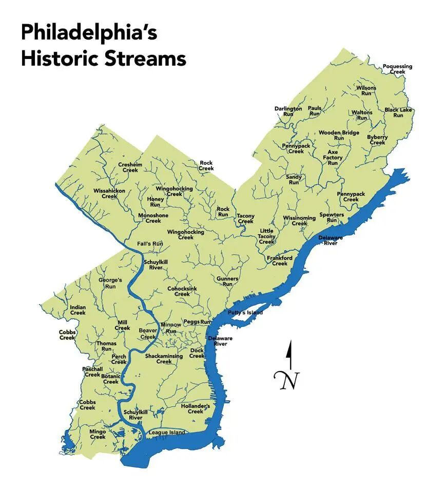 費城是美國最老、最具歷史意義的城市之一。城市化發(fā)展所帶來的一系列問題在費城也很明顯存在。不透水面積增加,自然水體消失退化。同時雨污合流的溢流(Combined sewer overflow),河流改變和侵蝕(Hydromodification/erosion),洪澇災害(Flooding), 水質惡化(Water quality)等問題都不同程度存在于費城的四條主要河流中。