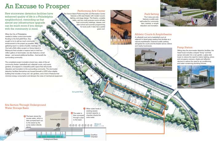 此外,本報告還將對費城西部的一個改造項目進行簡要介紹(威尼斯島Venice Island),該項目雖小但是包含了低影響開發(fā),最優(yōu)管理措施和雨水設備,MS4管理,CSO調蓄池,泵站等諸多元素。