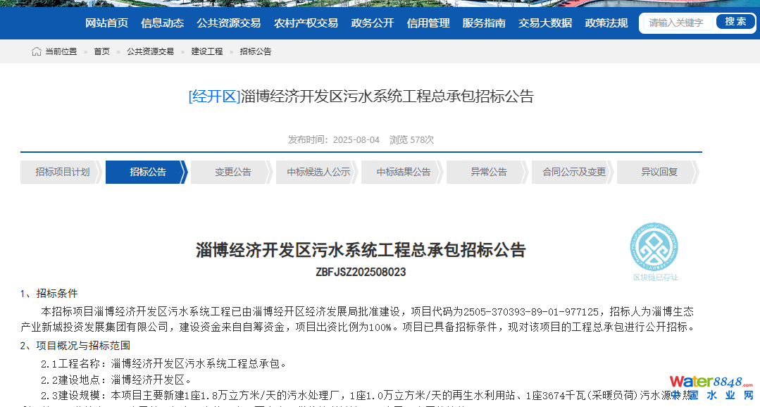 5.37億元!淄博經(jīng)濟開發(fā)區(qū)污水系統(tǒng)工程總承包開始招標