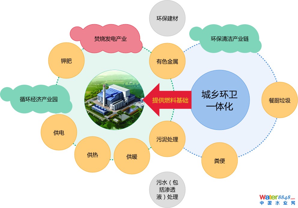 垃圾通過焚燒發(fā)電產(chǎn)生的熱能,除了滿足每個項(xiàng)目自身使用以外,還可以為項(xiàng)目地城鄉(xiāng)供熱。